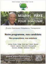 Liste associative Ecologique Citoyenne POUR FONTENAY, avec Michel FAYE Notre PROGRAMME, version numérique : Pour obtenir la version numérique intégrale du PROGRAMME de la Liste Associative Ecologique Citoyenne POUR FONTENAY , tête de liste Michel FAYE cliquez sur le lien ci-après: https://www.pourfontenay.fr/sites/default/files/dossiers/programme_de_la... Vous pouvez aussi nous demander la version papier, si vous ne l'avez par eue lors de nos distributions...
