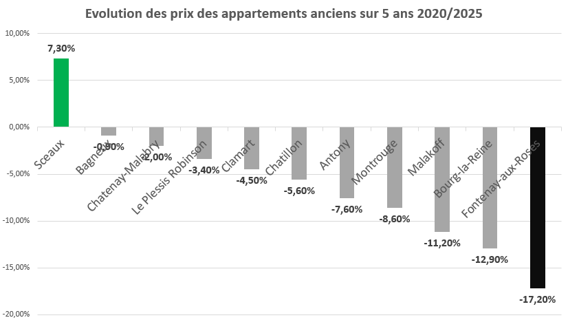 La plus forte baisse : Fontenay : -17,2% dont -6,2% la dernière année.
