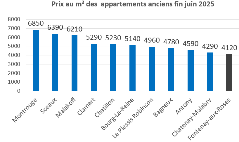 Le plus bas : à Villeneuve La Garenne : 3200 euros/m² , Fontenay étant la deuxième ayant le prix du m² le plus bas à 4120 euros/m²