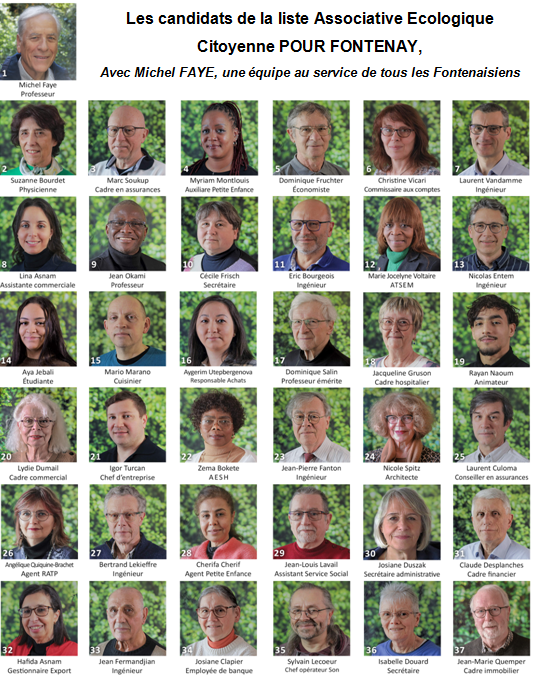 Les candidats de la liste Associative Ecologique Citoyenne POUR FONTENAY