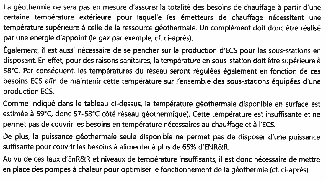 - Un système dont le rapport investissement / énergie renouvelable produite interroge, car il est situé sur une zone en limite de température et donc un apport en électricité et gaz conséquent. Cf page 25 du rapport technique du projet.