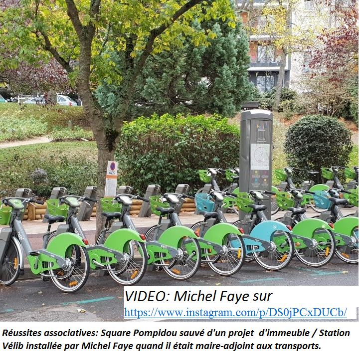 Quand il était maire-adjoint, Michel Faye a créé les 4 stations Vélib’, l'arrêt du bus 194 devant le collège, l'arrêt du Petit Fontenaisien aux Blagis et l’amélioration du service de bus 394.