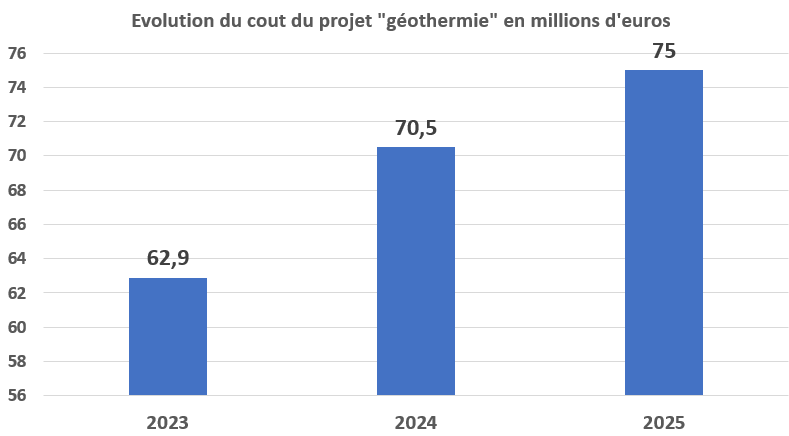 Va-t-on mettre des sommes de plus en plus importantes dans ce projet de géothermie profonde dont le cout augmente d'année en année, avant d'arreter ce projet, comme cela s'est produit pour celui de la cuisine centrale XXL ?